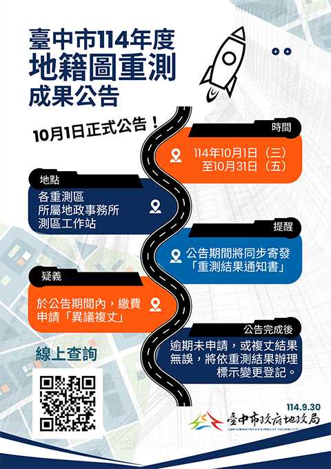 ⭐114年度地籍圖重測,訂於10月1日起至10月31日辦理重測結果公告⭐
